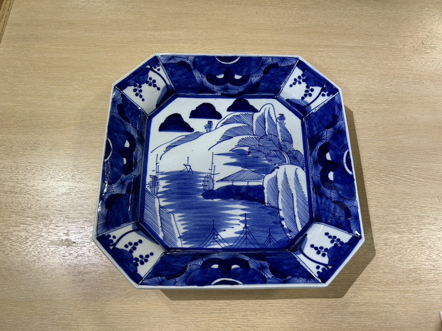 染付八角絵皿(線描き)