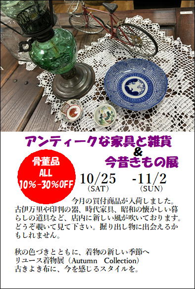 アンティークな家具と雑貨&今昔きもの展〈10/25(sat)~11/2(sun)〉